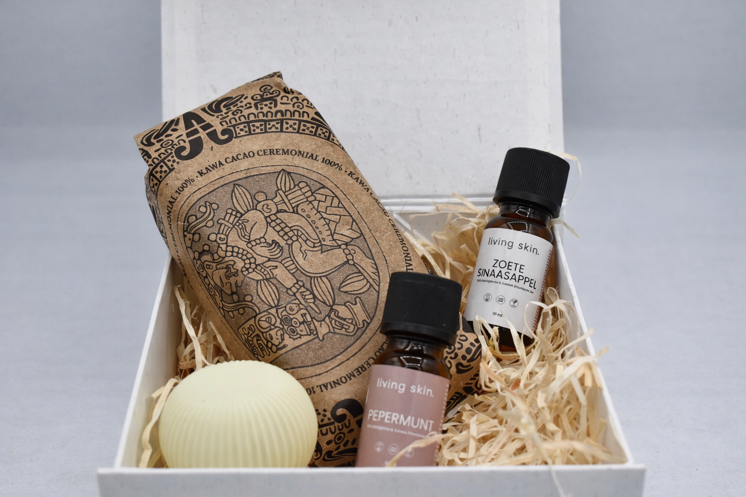 Cacaowonder en Living Skin geloven beiden in de kracht van natuurlijke rituelen — kleine, bewuste momenten die je energie en helderheid brengen. Deze samenwerking verbindt geur en smaak tot een ervaring die lichaam én geest ondersteunt.