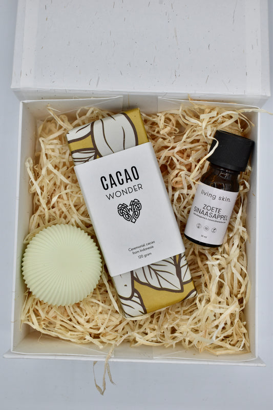 Cadeaupakket ceremonail cacao Bali x Living Skin – Ontspan & Herstel